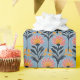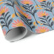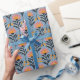 Este papel de embrulho apresenta um padrão floral alegre com flores estilizadas em tons de rosa e laranja, colocado contra um fundo azul claro. O design inclui folhas e caules azul-marinho escuros, criando um layout de grade equilibrado e harmonioso que é ao mesmo tempo moderno e divertido. Perfeito para adicionar um toque vibrante a qualquer presente, este papel transmite um clima animado e enérgico, ideal para celebrações ou surpresas do dia a dia. Seu estilo contemporâneo com influências retrô o torna versátil para várias ocasiões.