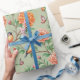 A charming wrapping paper featuring colorful songbirds perched among blooming orange flowers and fresh green leaves on a soft mint background. A lovely choice for bird lovers, floral enthusiasts, and anyone who enjoys bright, artistic botanical patterns.