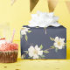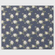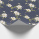 Papel De Presente Floral Branco Azul marinho