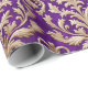 Papel De Presente Floral Dourado pálido Damasco Real Velvet Roxo