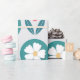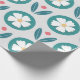 Um padrão refinado com flores brancas delicadas, envoltas em círculos lactais, complementado por folhas verdes estilizadas e pontos cor-de-rosa macio. O arranjo geométrico limpo adiciona um toque de elegância e equilíbrio.