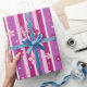 Purple floral wrapping paper with stripes.