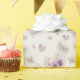 Um delicado papel de embrulho floral com aquarela apresentando buquês violetas suaves em tons de lavanda e rosa pastel.