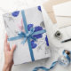 Papel De Presente Flores Azuis e Folhas de Cinza em Branco