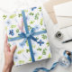 Papel De Presente Flores Azuis Marinho e Bebê com Padrão de Folhagem
