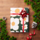 Papel De Presente Flores Brancas Centralizadas Amarelas e Fundo Verd