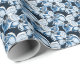 Papel De Presente Flores brancas e azuis sobre fundo preto.