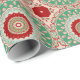 Papel De Presente Flores de Caleidoscópio Vermelho, Verde e Água