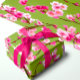 Papel De Presente Flores de Cerejeira Rosa em Verde Chartreuse