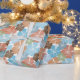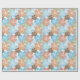 Papel De Presente Flores de Hibisco Verdes Pêssego Azul Tropicais