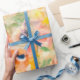 Cor d'água colorida e anêmonas cor de laranja pastel, brancas e rosadas, papoilas, rosas e outras flores da primavera com folhas verdes pálidas.