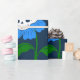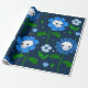 Papel De Presente flores do crânio floral de halloween azul