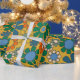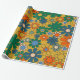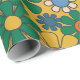 Flores do Jardim Retroativo Prendam Padrão Floral Multicolorido 60s 70s no Rolamento de Papel de Embalagem de Mostarda. Vintagens; tons laranja, azuis e verdes vibrantes na mostarda amarela. Por Kierkegaard Design Studio.