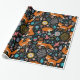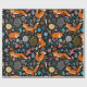 Papel De Presente Flores e Pássaros de Raposas Vermelhas Cutas