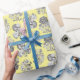 Papel De Presente Flores Monocromáticas em Fundo Amarelo Giftwrap