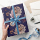 Papel De Presente Flores Outonais de Outono Água-marinha Padrão Azul