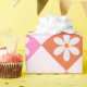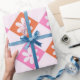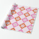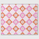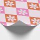 Papel De Presente Flores Retro Brancas em Ouros Laranja e Rosa