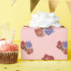 Esta pintura de flor original de um rosa de pêssego, uma rosa vermelha e um rosa azul é pintada em cor de água. O bonito grupo de flores coloridas parece excelente neste papel original de embrulho. A arte floral realmente se destaca contra o fundo rosa bonito e a suavidade do rosa realmente acentua a delicadeza do trabalho de arte rosa. Este monte de papel de plástico para presentes de arte rosa vai parecer original e único embrulhado em qualquer presente.