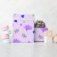 Padrão de flores roxas divertidas com corações azuis brilhantes sobre fundo roxo lavanda. A cor de fundo pode ser alterada.