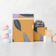 Papel De Presente Flores roxas e brancas num fundo de mostarda