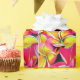 Neon rosa, laranja e amarelo com design de arte original de pintura aquosa de Sacha Grossel de flores tropicais rosa, amarelas e laranja Frangipani Plumeria em foco próximo, estilo macro. Este brilhante, colorido design floral botânico lembra o verão, a cultura do surf, o calor e a proximidade da praia. Colorida e brilhante!