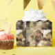 Design de arte de árvores na floresta com ricas castanhos, brancos e cremes com picos de verde, laranja e amarelo.