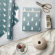 Papel de embrulho de presente de Natal, com uma árvore branca, em padrão repetido, sobre um fundo azul de floresta azul espruce.
