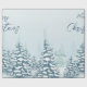 Uma floresta de abetos coberta de neve no Natal é um fascinante cheio de magia com frentes azuis de gelo ponderadas por um cobertor espesso de neve branca lisa.
