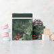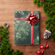 Um papel elegante e sofisticado de embalagem de férias, que inclui pinheiros brancos e terras verdes do ramo das árvores de corrida, com amoras de ilex vermelhas na diagonal, contra um fundo verde de florestas de pinheiros profundos.