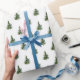 Um pequeno papel de embrulho de pinheiro de árvore de Natal que apresenta pequenos pinheiros em um padrão repetido em branco.