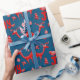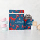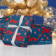 Adicione uma saudação e um nome ou outro texto a este belo item de embrulho de presente que apresenta gráficos folk no estilo escandinavo de cervos de madeira e flores de inverno em tons modernos de vermelho e azul com pistas de branco. arte original de LeahG.