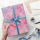 Papel de enrolamento com um campo de flores pálidas sobre fundo azul claro. Use para embrulho de presente, prateleiras de forro e gavetas ou mesmo artesanatos.
