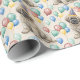 A cheerful watercolor illustration featuring a fluffy puppy wearing a festive party hat, surrounded by colorful balloons on a soft, textured background. The playful yet gentle style makes this design perfect for birthdays, celebrations, and joyful gift giving. Bright but balanced colors give the wrap a lighthearted feel without overwhelming the gift, making it ideal for dog lovers of all ages.