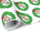 Fantoche de Natal e Leituras - Cartoon bonito, rosto de Whippet, enquadrado por uma coroa de Natal com folhas sagradas, bagas, velhas luzes de Natal à moda antiga e um grande arco vermelho. Copyright © Angi Laframboise & Brian Laframboise. presentes divertidos de cães de Natal para amantes de cães.