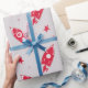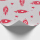 Este papel de empacotamento baseado em padrões apresenta uma ilustração infantil de foguetes e estrelas do espaço vermelho. Esta é uma escolha excelente para rapazes ou crianças entusiastas do espaço de todos os gêneros e idades.