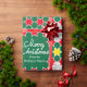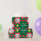 Fotos brilhantes da família de Natal divertidas envolvendo papel de presente em tons de vermelho, verde e branco. Personalize com suas três fotos especiais da família, nome da família ou mensagem. Lê Feliz Natal da Família Rodríguez. Desenvolvido exclusivamente pela Sarah Trett.