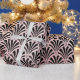 Este papel de envolvimento elegante caracteriza um teste padrão cor-de-rosa da folha de ouro do falso em um estilo do art deco, em um fundo preto. Note por favor que o design está imprimido sobre e não contem a folha de ouro física real.