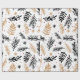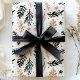 Papel De Presente Folhagem de Natal Moderna Preta e Dourada