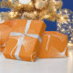 Papel De Presente Folhas de abstrato branco e laranja