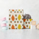 Este papel de embrulho incrível apresenta um padrão de cornos e folhas de carvalho. As folhas de carvalho são coloridas de verde a amarelo, laranja e vermelha para representar as mudanças no outono ou outono. O design é ideal para uma celebração de outono ou outono.
