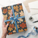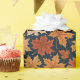 Folha de outono com folhas castanhas e beges sobre fundo escuro.