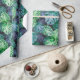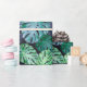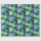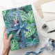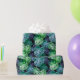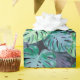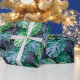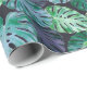 Folhas de monstera tropical de coloração aquosa colorida sobre fundo azul escuro.
