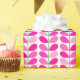 Papel de envolvimento em um teste padrão inspirado dinamarquês moderno de matéria têxtil do meio século das folhas estilizados - máscaras do rosa, do rosa pastel ao fúcsia profundo/rosa quente, em um fundo branco