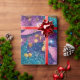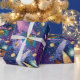 Papel De Presente Folhas Douradas e Azuis Roxas Esparsas