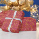 Papel De Presente Folhas magenta e Dourada