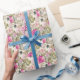 Papel De Presente Folhas Verdadeiras de Sage Floral Rosa
