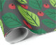 Papel De Presente Folhas Verdes, Berries Vermelhos, Padrão De Folhas