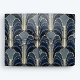 Embalagem geométrica de presente elegante azul escuro e de arte dourada. O brilho dourado usado nesse impressão é simulado, não é uma relíquia real. Arte original de Marketa Stengl.