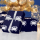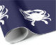 Forma de caranguejo branco contra azul náutico escuro. A espécie é um caranguejo azul.