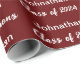 Este papel de empacotamento vermelho escuro tem um modelo de texto que você pode editar. Você pode mudar o texto branco para mostrar o nome do seu formando, o ano em que o aluno se gradua (mostrado: Classe 2024) e uma mensagem personalizada (mostrada: Parabéns). Parabéns e Classe 2024 estão em um roteiro elegante, mas o nome do formando não está em um script.